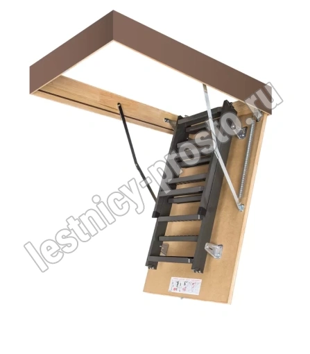Установленные в лестнице угловые петли-шарниры нового образца придают ей высокую прочность и надежность, а также предохраняют короб от возможной деформации. Основное преимущество чердачной складной металлической лестницы LMS сводится к ее небольшим габаритам при сохранении высокой функциональности, прочности, надежности и эстетичности конструкции. Монтировать лестницу очень просто, для этого не придется затрачивать много времени и сил.