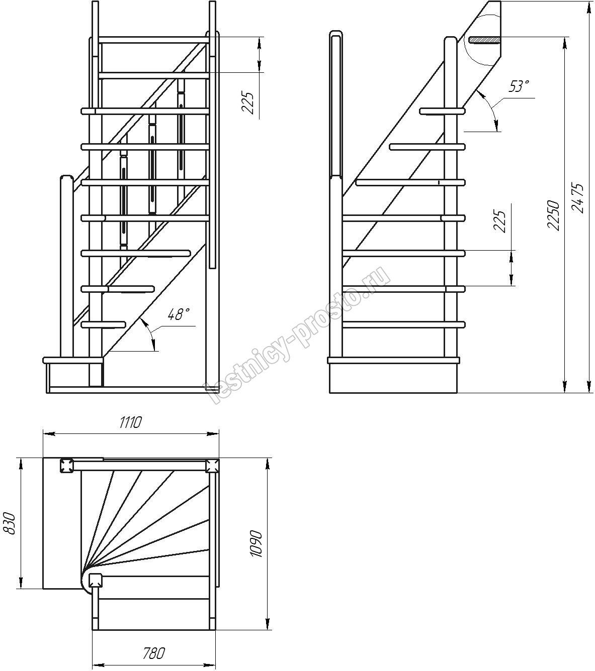 Высота лестницы 2250 - 2475 мм
