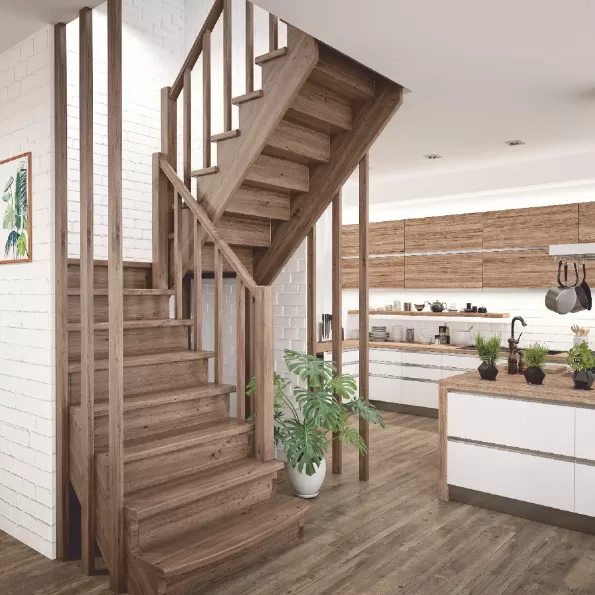 Классическая модель с забежными ступенями дает возможность произвести установку лестницы на ограниченном пространстве, несмотря на ее стандартный размер. Мобильность размещения и современный дизайн заслуженно можно считать преимущественными отличиями этой модели.