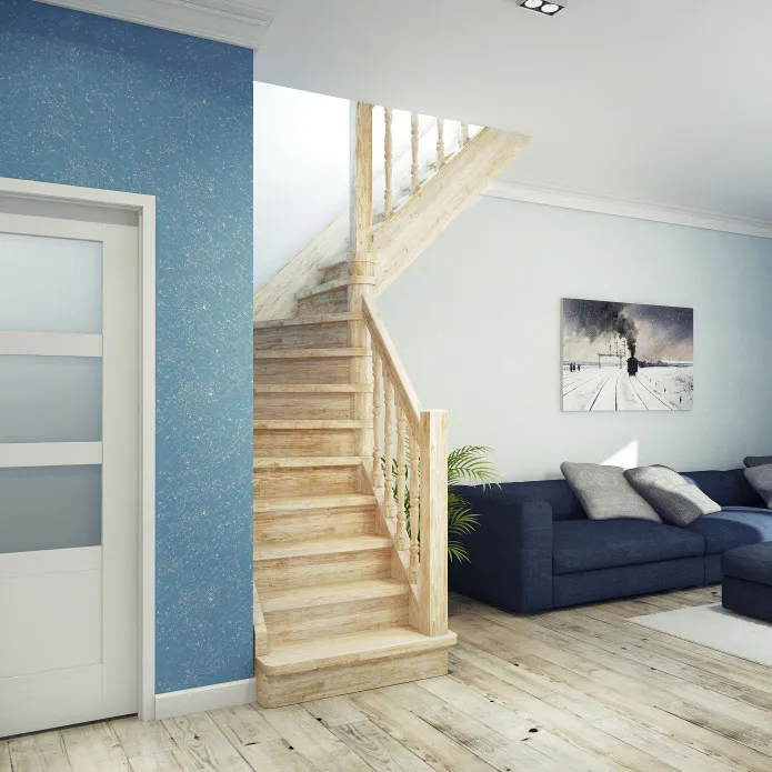 Базовый комплект включает в себя деревянные элементы лестницы, подступенки и ограждения без какого-либо покрытия. Лестница поставляется в разобранном виде, упакованная в ящик. Монтаж производится силами двух человек, в соответствии с указаниями, приведёнными в паспорте лестницы.