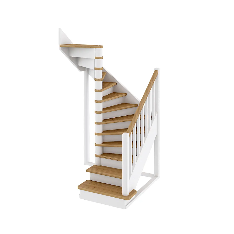 Базовый комплект включает в себя деревянные элементы лестницы и ограждения без какого-либо покрытия. Поставляется в разобранном виде, упакованная в ящик. Монтаж производится силами двух человек, в соответствии с указаниями, приведёнными в паспорте лестницы.