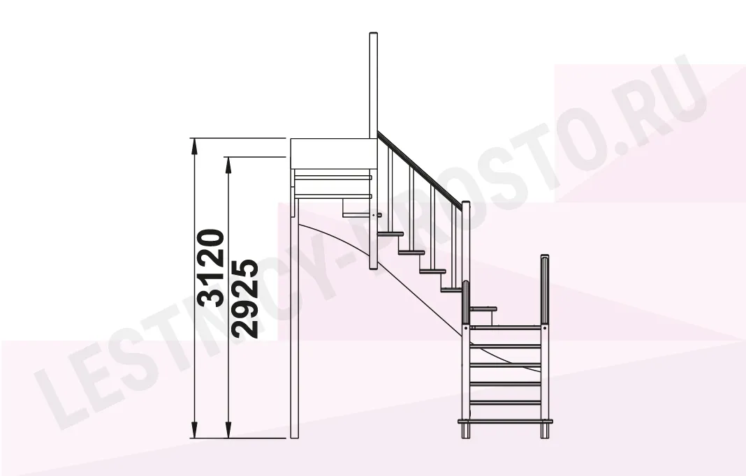 Лестница К-009М с поворотом налево
