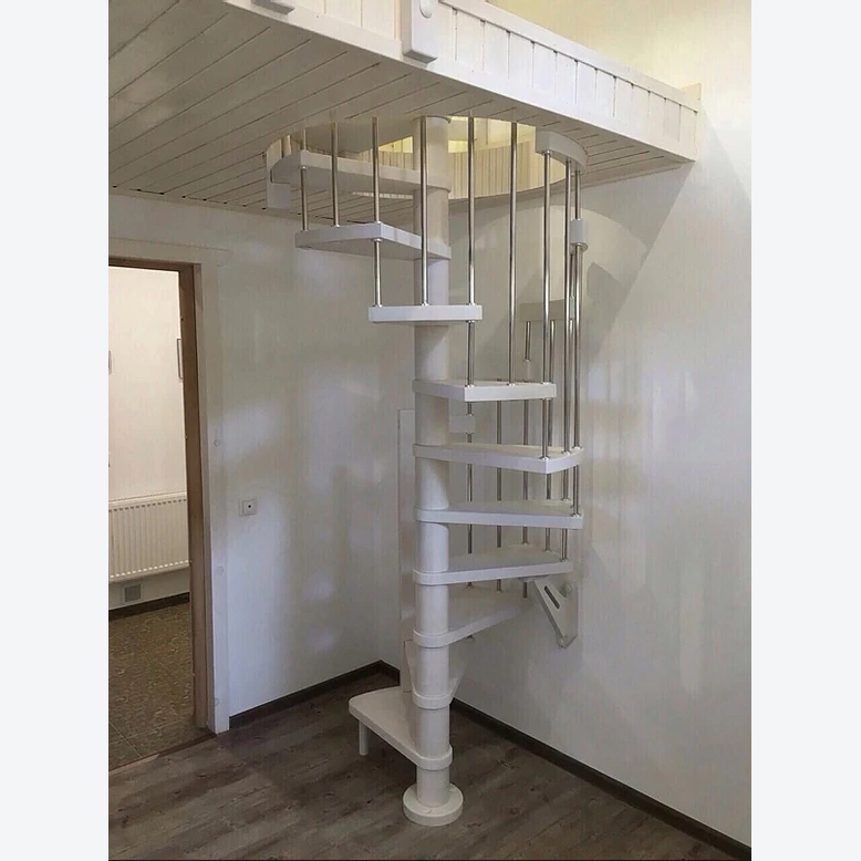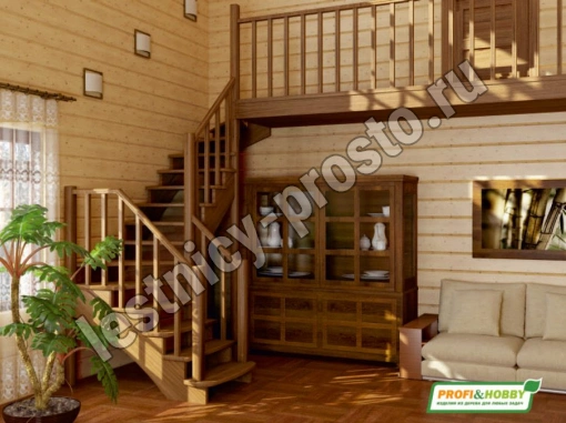 Ступени и поручень лестницы выполнены из бука, остальные элементы из сосны.