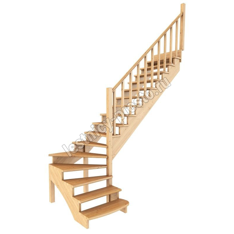 Ступени и поручень лестницы изготовлены из дуба, остальные элементы из сосны. Возможно изготовление модели полностью из дуба. Базовый комплект включает в себя деревянные элементы лестницы и ограждения без какого-либо покрытия. Вы можете заказать у нас профессиональную покраску лестницы в цвета, отвечающие особенностям вашего помещения.