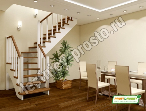 Ступени и поручень лестницы изготовлены из дуба, остальные элементы из сосны.