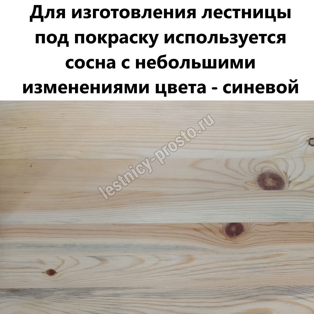 Обратите внимание! Эта модель изготовлена из сосны эконом-класса, что отражается на внешнем виде древесины заметными синими/серыми вкраплениями, эти особенности не влияют на механические свойства лестницы, но могут быть заметны при покраски лестницы в светлые тона!