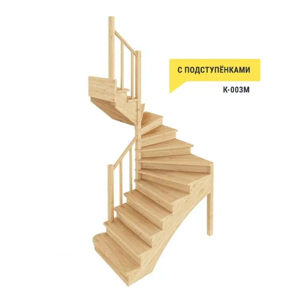 Базовый комплект включает в себя деревянные элементы лестницы с подступёнками и ограждения без какого-либо покрытия.