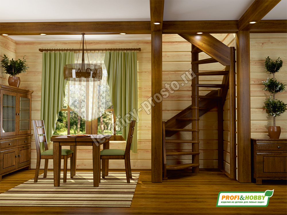 Ступени и поручень лестницы изготовлены из ясеня, остальные элементы из сосны.
