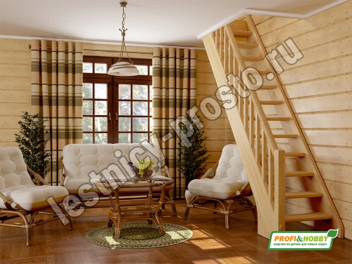 Ступени и поручень лестницы изготовлены из ясеня, остальные элементы из сосны.