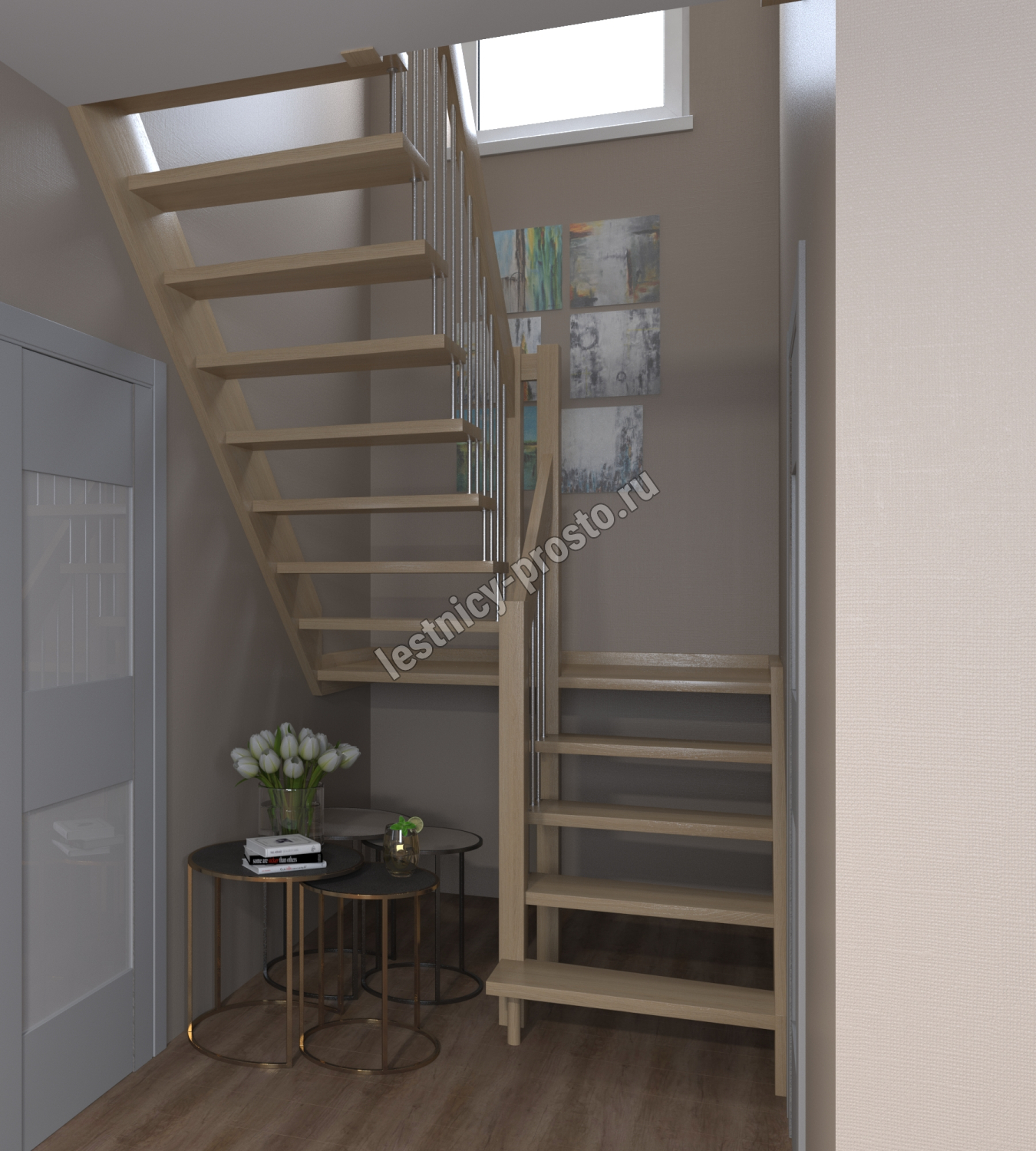 Надёжная современная лестница выполнена по немецкой технологии. Стоимость указана для лестницы с ограждением (с одной стороны); Поставляется в разобранном виде, в комплекте необходимый крепёж; Лестницу можно собрать самостоятельно; Так же, вы можете заказать услугу монтажа нашими специалистами; 4 вида породы дерева для изготовления лестницы: сосна, бук, ясень, дуб; возможна комбинированная лестница: из сосны (ступени бук, ясень, дуб); Деревянные элементы без какого-либо покрытия, отшлифованы, готовы к покраске. За дополнительную плату, вы можете изменить любые параметры, а именно: увеличить глубину ступени; увеличить ширину марша до 900 мм. и выше; заказать подступенки к лестнице; заказать отделку перекрытия (между 1-м и 2-м этажами); изготовить дополнительный промежуточный марш; заказать ограждение 2-го этажа; покраска в любой цвет или несколько цветов или покрытие защитными средствами; дополнение балясины из нержавеющей стали деревянными элементами; покраска балясин из нержавеющей стали порошковой краской в цвет RAL.
