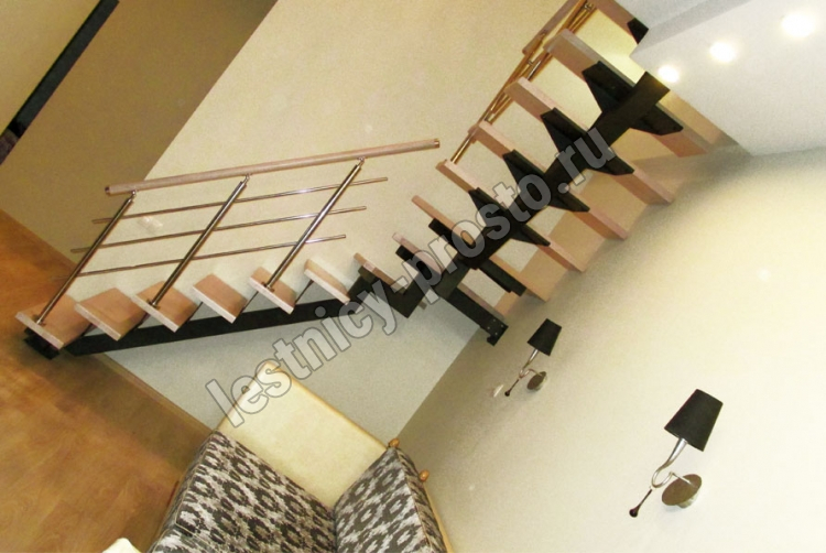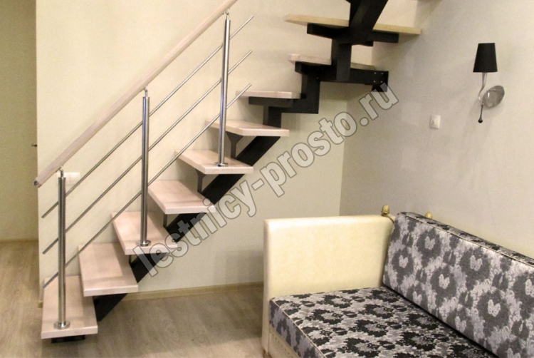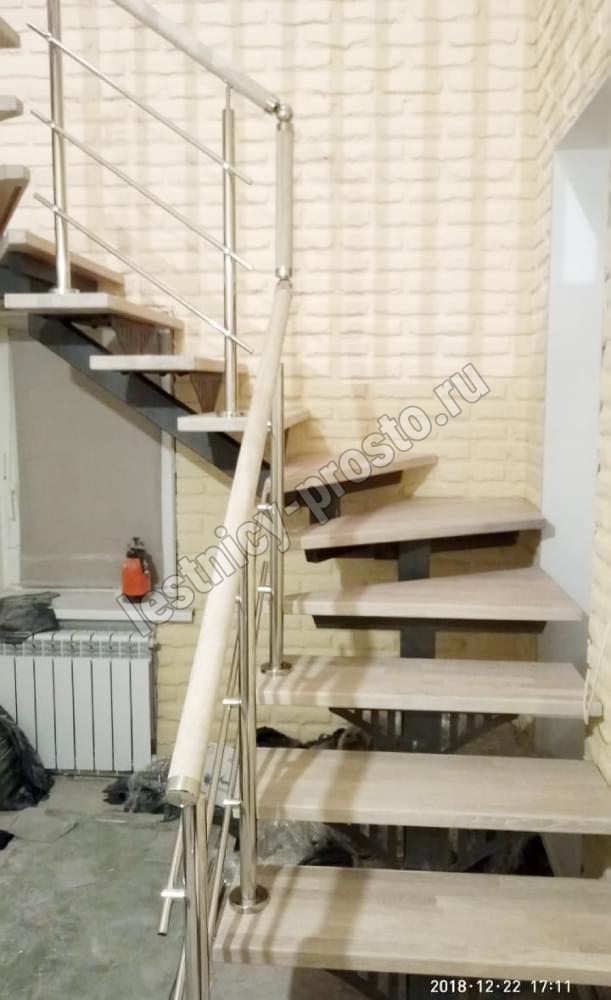 Комплект ограждений для П-образной лестницы PROSTO MONO из 12 ступеней.