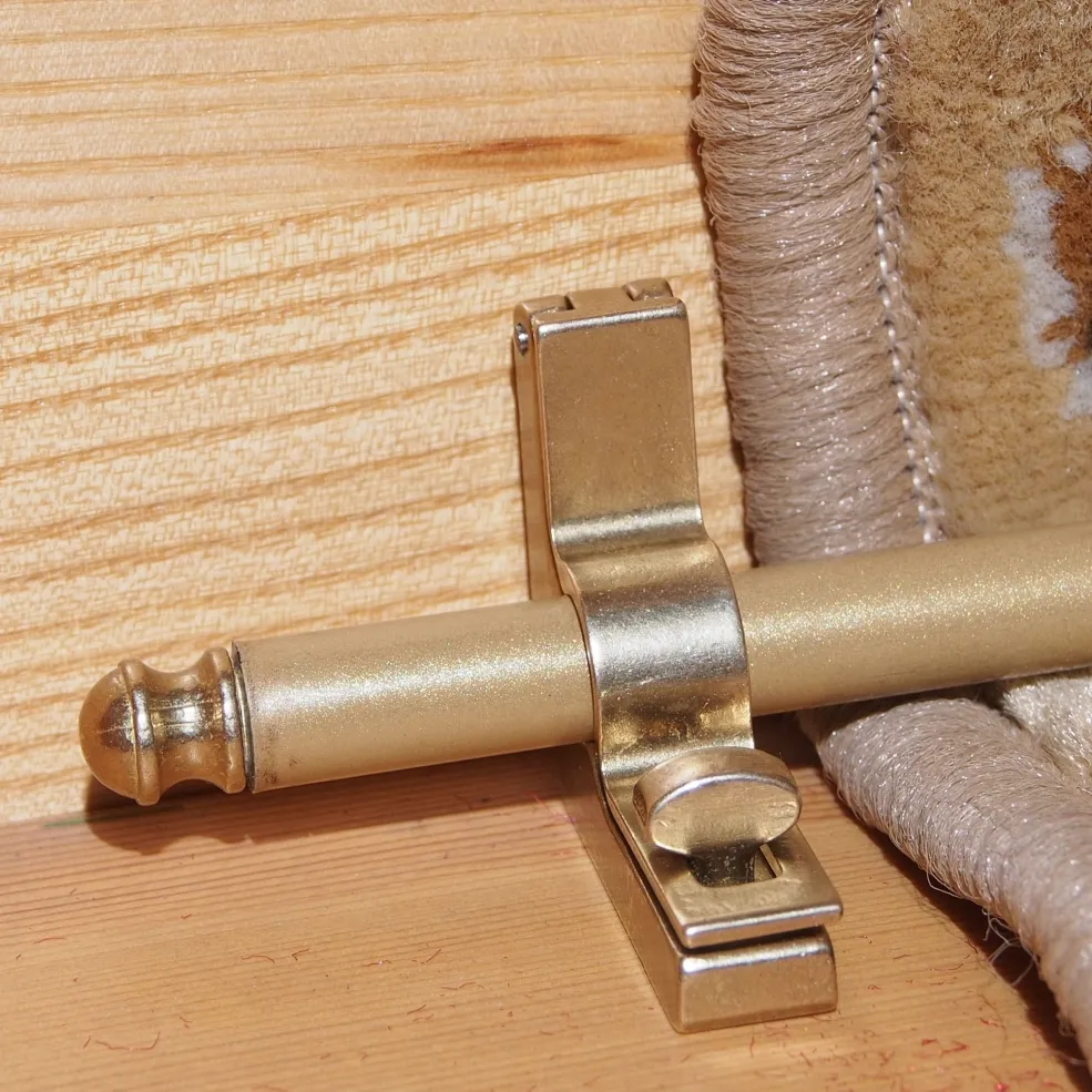 Ковродержатель комплектуется двумя держателями и двумя заглушками из латуни, а также трубкой из металла, окрашенной порошковым способом в цвет "золото".