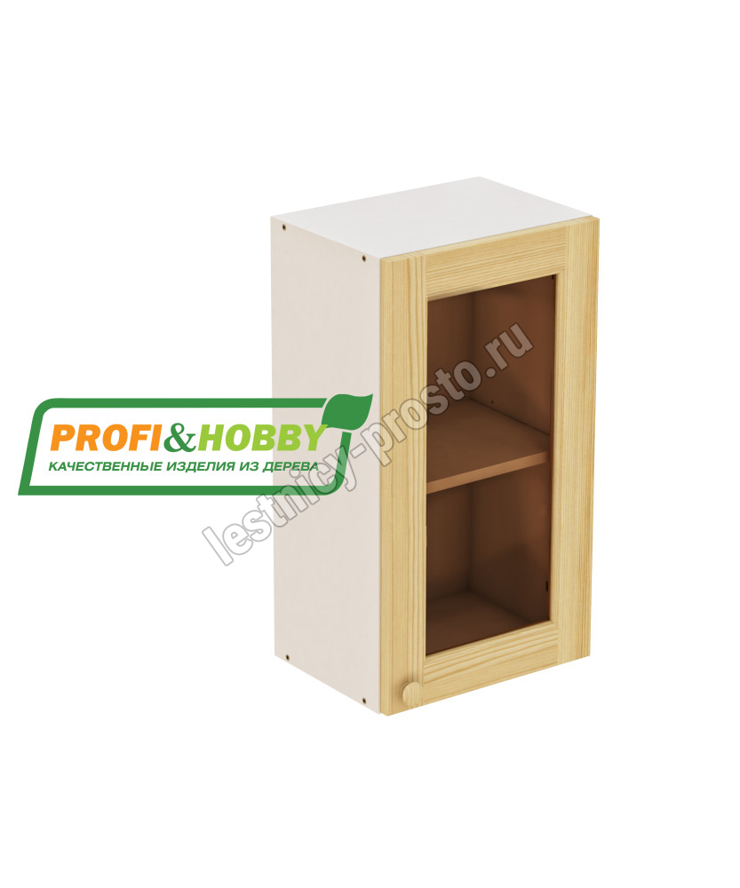 Шкаф навесной 450х340х720 + фасад сосна под стекло бесцветный акриловый лак