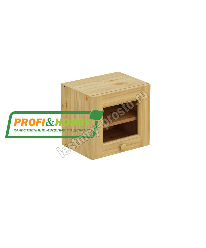 Шкаф-антресоль навесной 400 х 300 х 360, под стекло, сосна, бесцветный акриловый лак