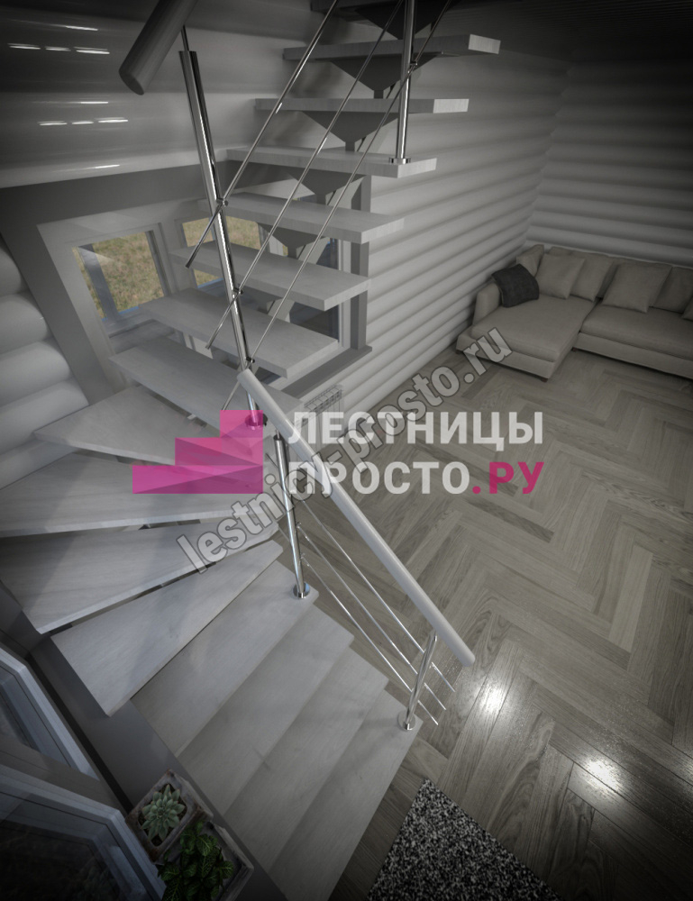 Каркас лестницы PROSTO MONO STEP TRINITY г-образная забежная с ограждением