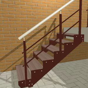 Покрытие порошковое, очень прочное и долговечное. Все детали каркаса крепятся с помощью болтов, благодаря чему Вы можете собрать каркас самостоятельно без применения сварки. В зависимости от ширины лестницы, каркас состоит из двух (ширина до 1 метра) или трех (ширина до 2 метров) опорных балок (тетив). Ступени лестницы состоят из металлической рамки, обеспечивающей необходимую прочность, и покрытия из террасной доски ДПК (древесно-полимерный композит). Ступени не боятся воды и мороза, не теряют со временем свой внешний вид и не требуют ухода. Нержавеющая сталь, которую мы используем для ограждений на улице - неприхотлива в обслуживании, выглядит стильно и прекрасно выдерживает капризы погоды