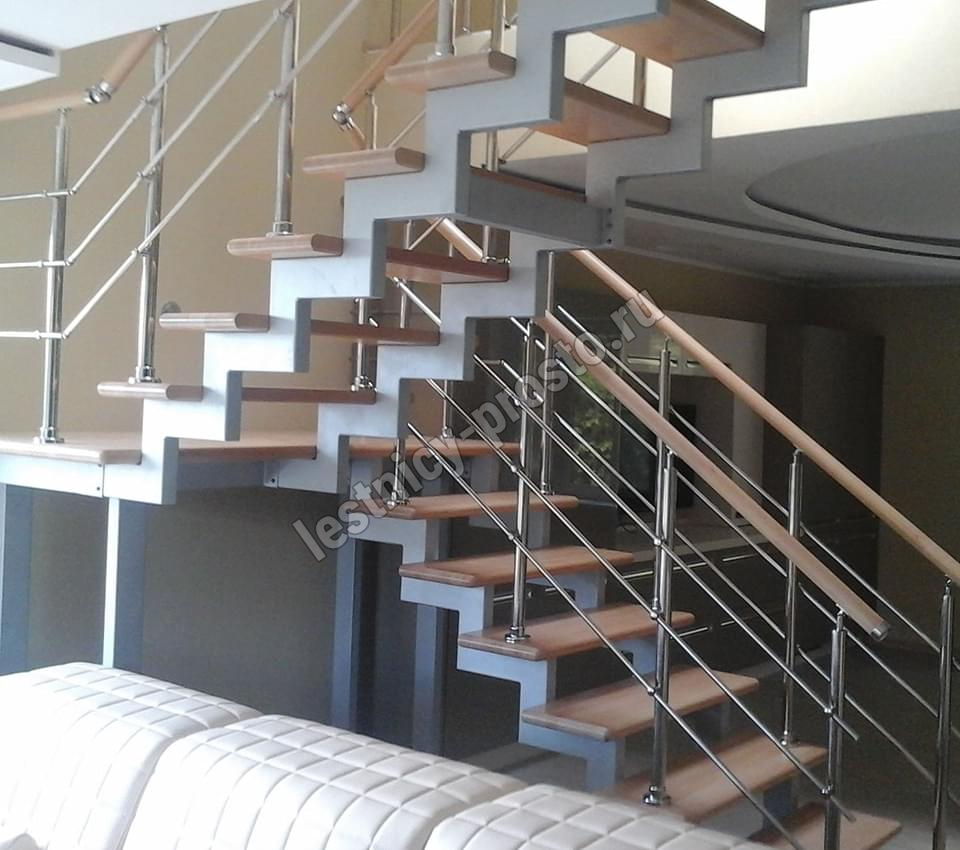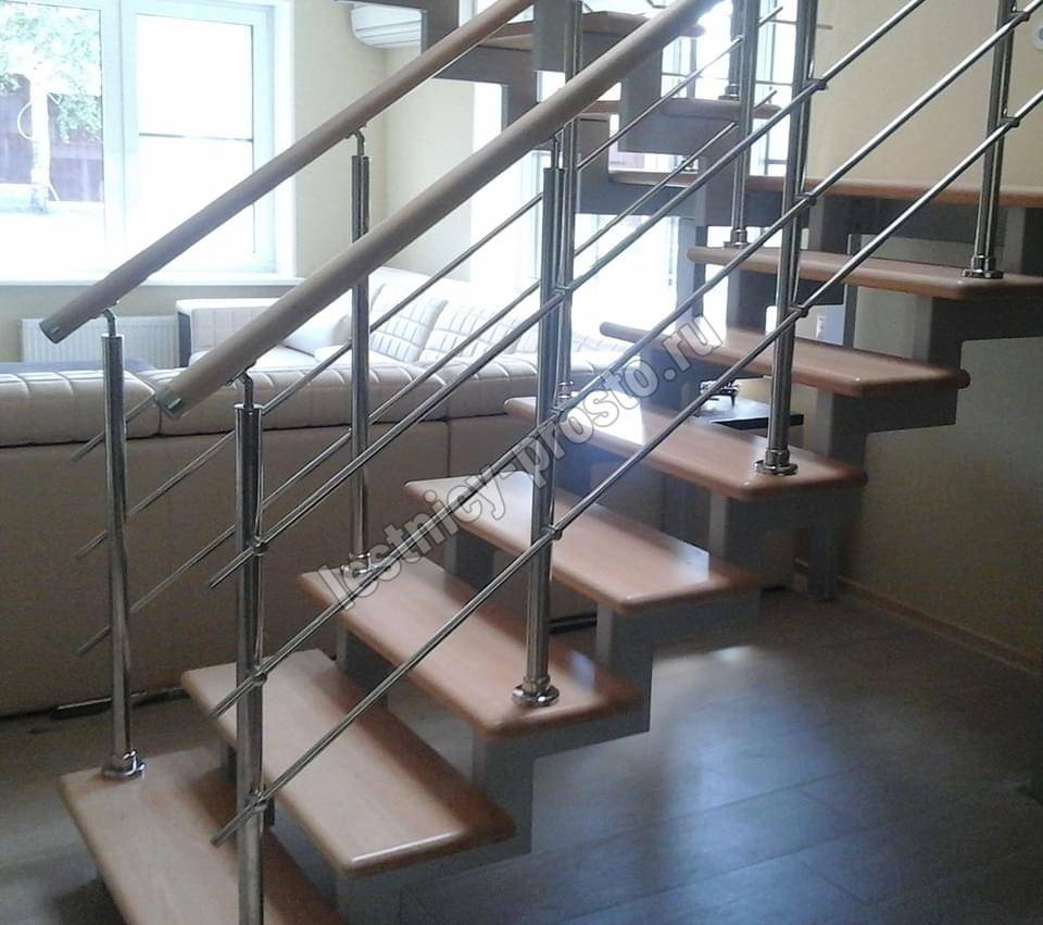 Ступени этого варианта лестницы изготовлены из сращенного бука категории АВ, без какого-либо покрытия.