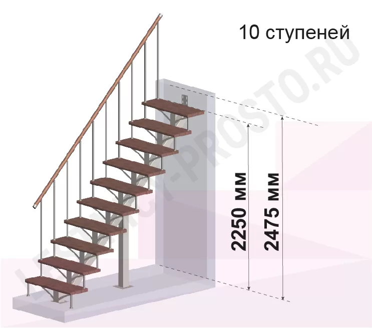 Лестница PROSTO MONO прямая, h247.5 см, ступени бук