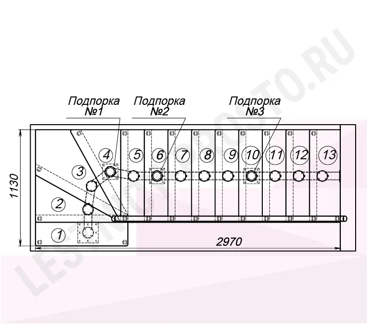 Габариты в плане 1130 × 2970 мм