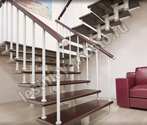 Каркас лестницы представляет собой набор модулей, которые комплектуются уже готовыми к монтажу.