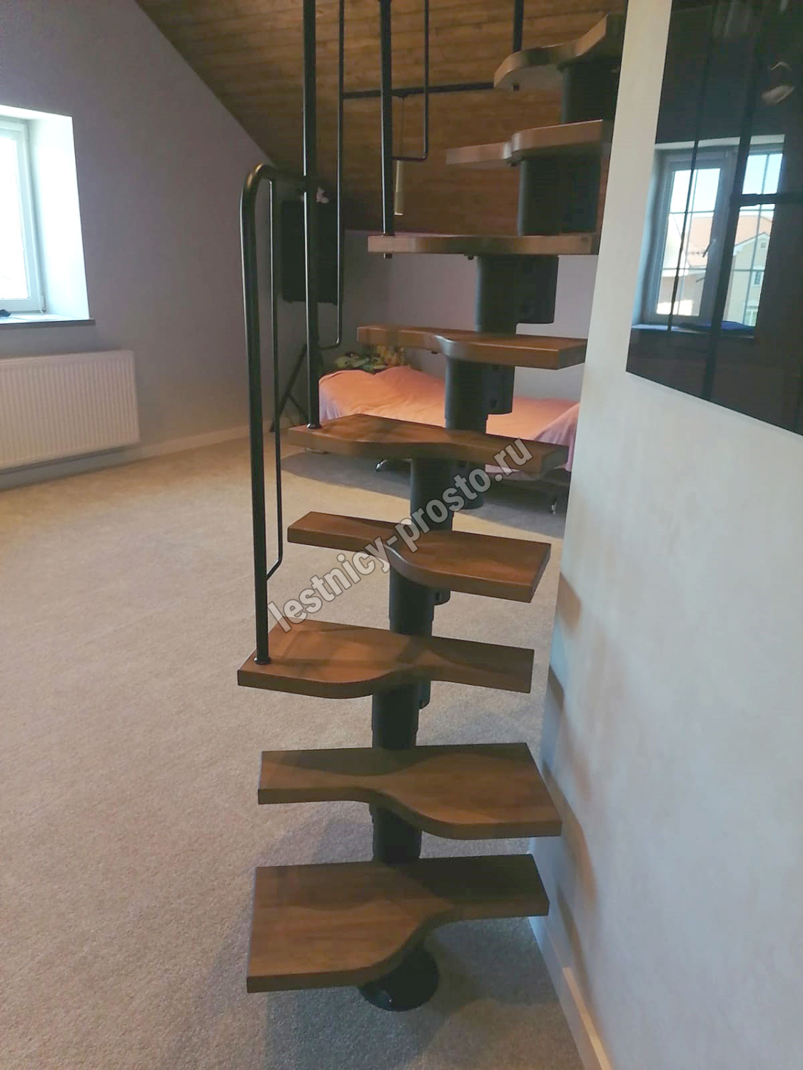 Лестница Prosto Urban Black гусиный шаг 700 мм, h180-264 см (10 ступеней), бук