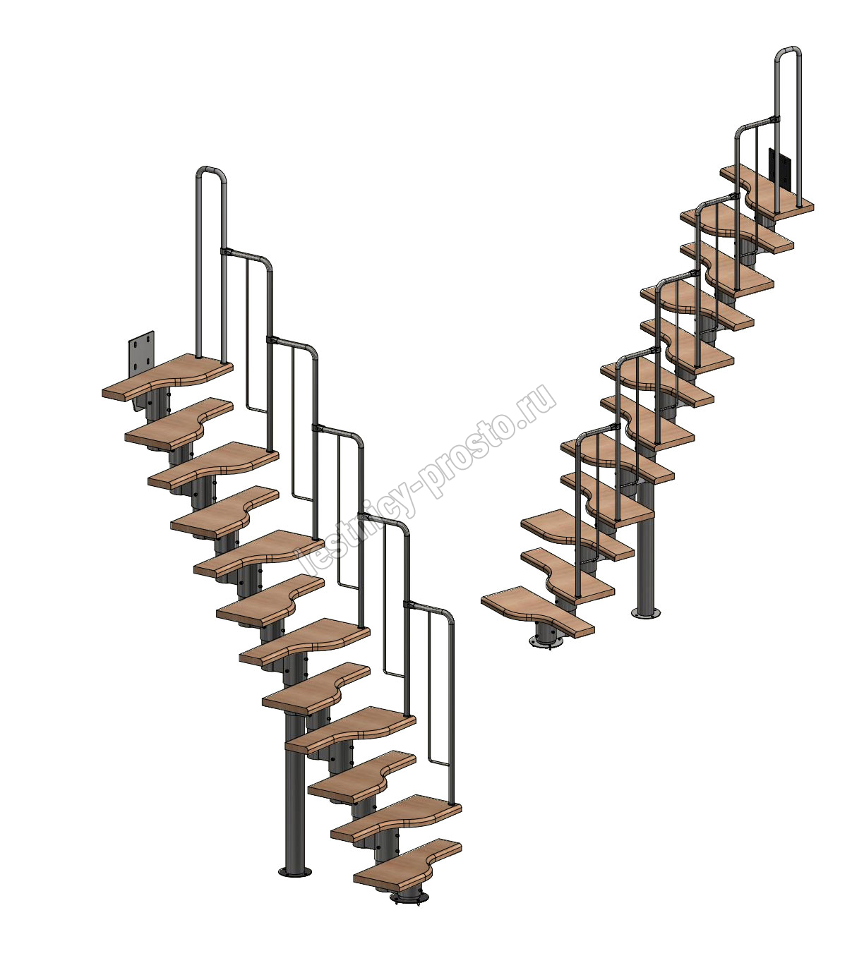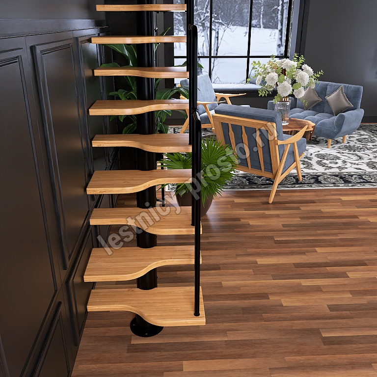 Лестница Prosto Urban Black гусиный шаг 700 мм, h216-312 см (12 ступеней), дуб