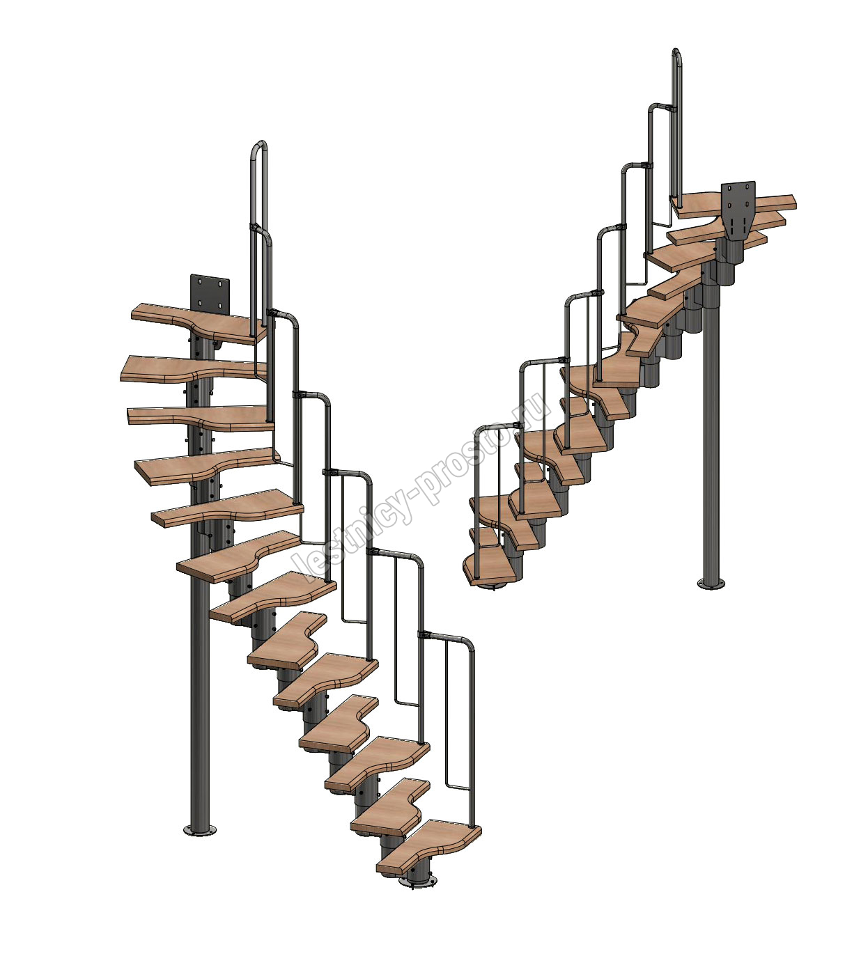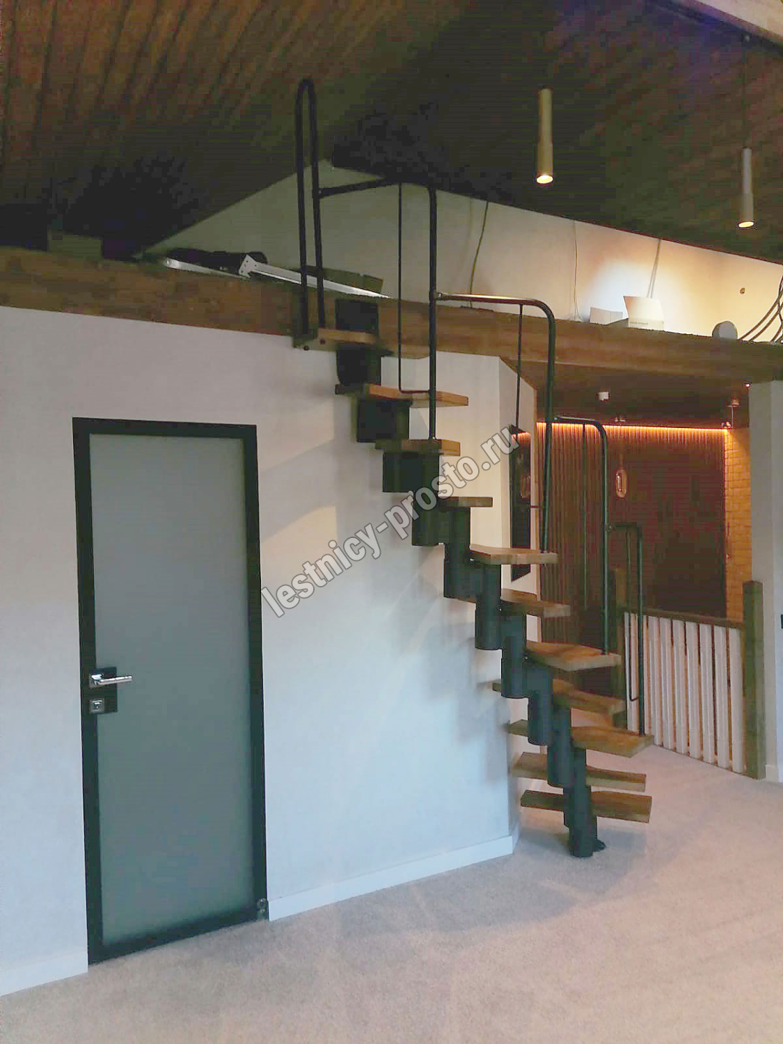 Лестница Prosto Urban Black гусиный шаг 700 мм, h234-336 см (13 ступеней), бук