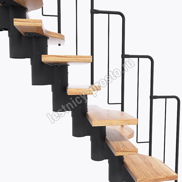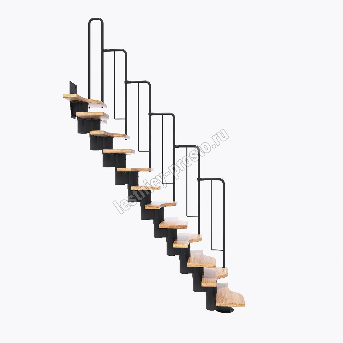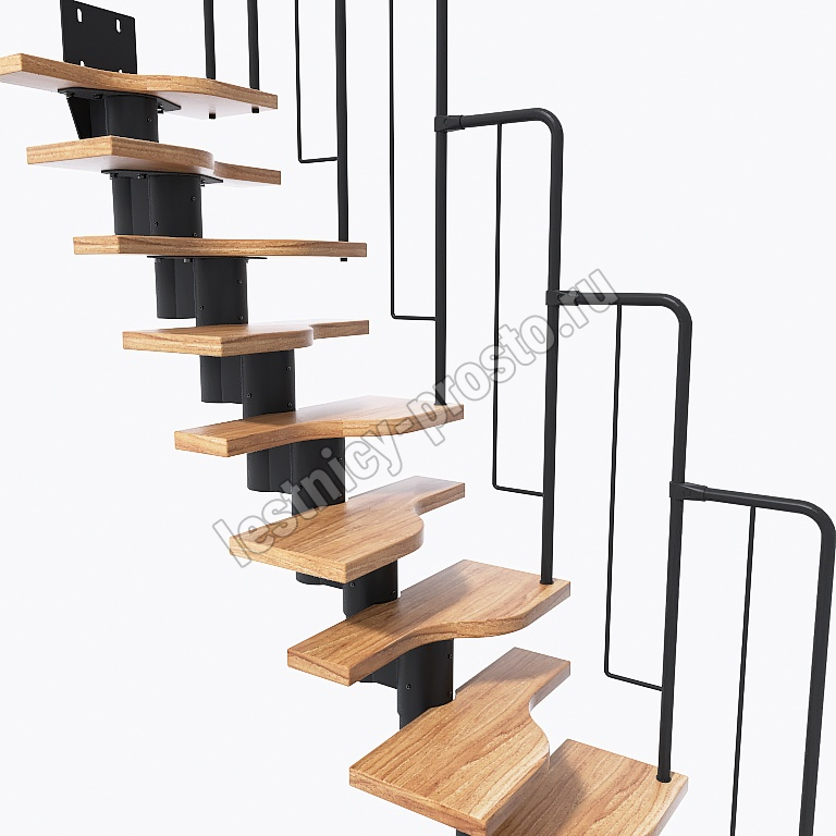 Лестница Prosto Urban Black гусиный шаг 600 мм, h198-288 см (11 ступеней), дуб