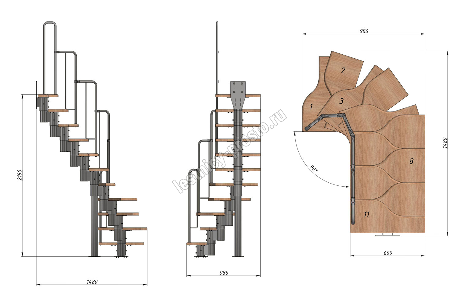 Высота лестницы 1980 - 2880 (11 ступеней) мм