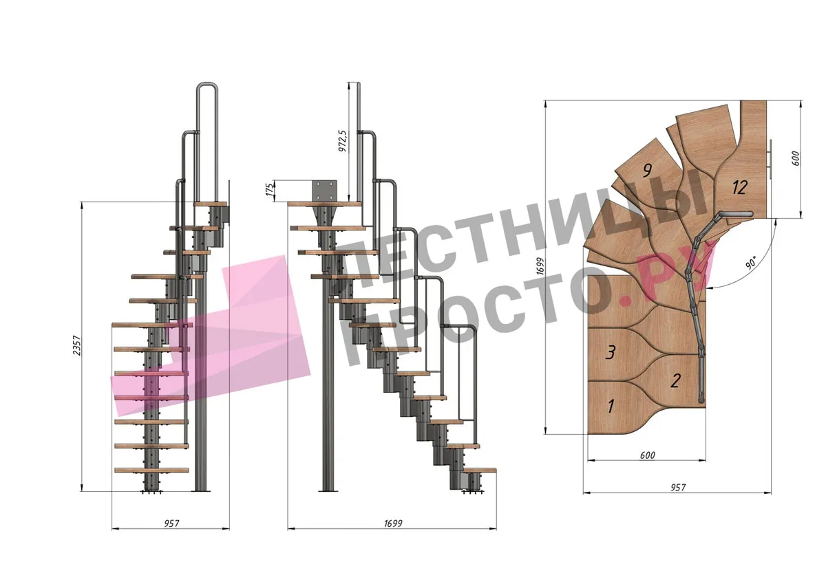 Высота лестницы 2160 - 3120 (12 ступеней) мм