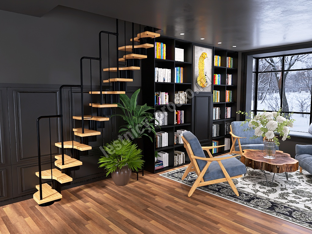 Лестница Prosto Urban Black гусиный шаг 600 мм/ Ступени из берёзы мультиплекс