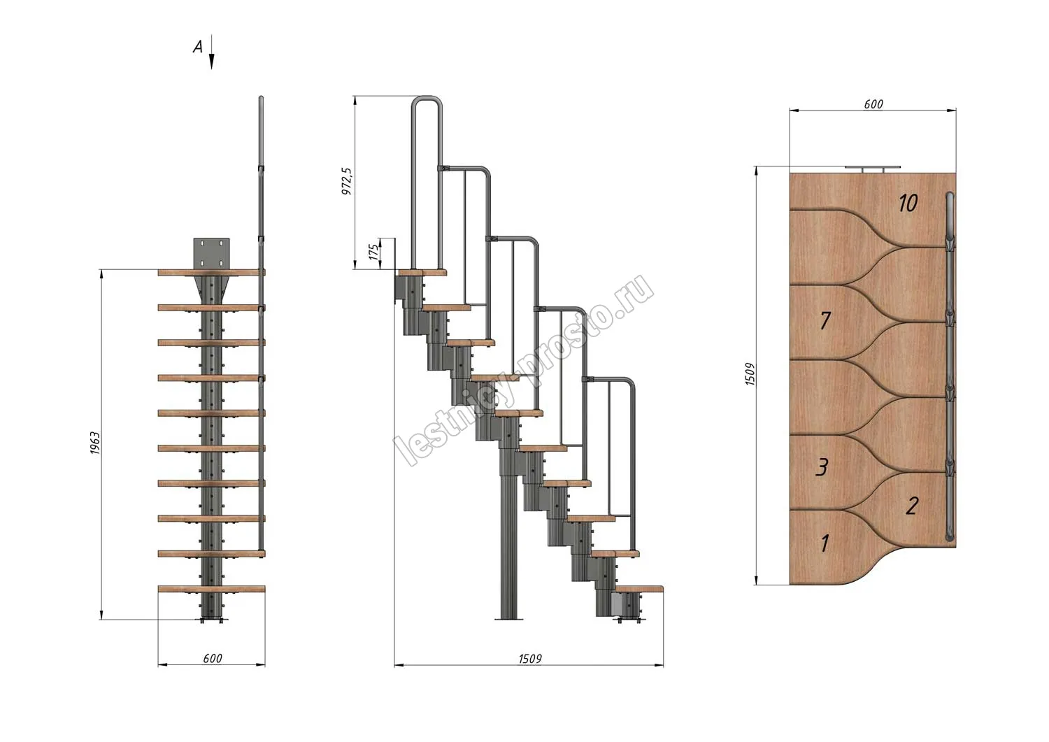 Лестница Prosto Urban Black гусиный шаг 600 мм