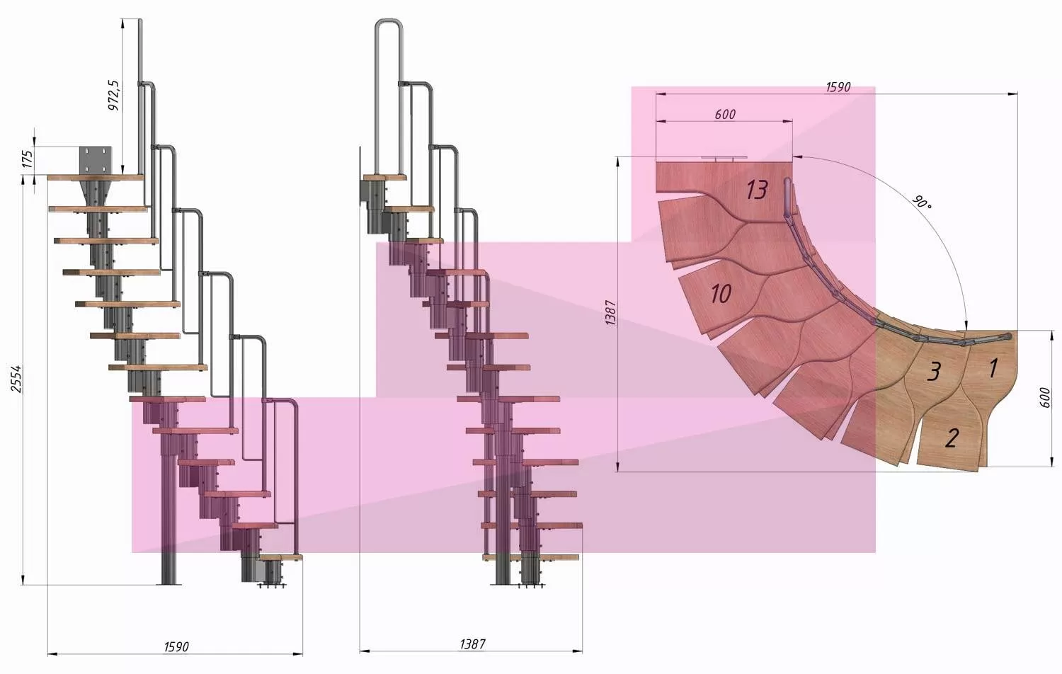 Высота лестницы 2340 - 3360 (13 ступеней) мм