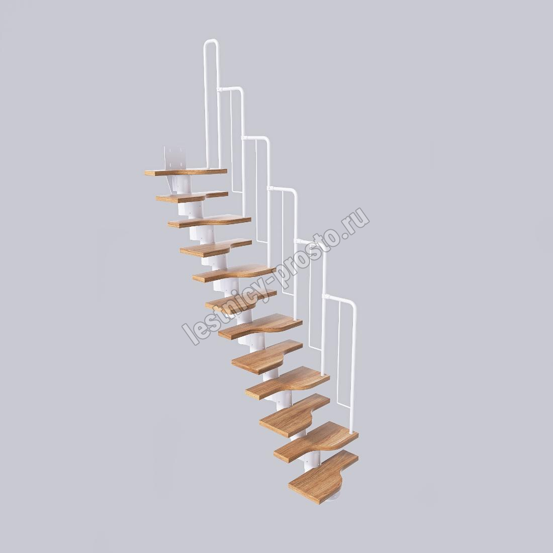 Лестница Prosto Urban White гусиный шаг 600 мм, h234-336 см (13 ступеней), берёза мультиплекс