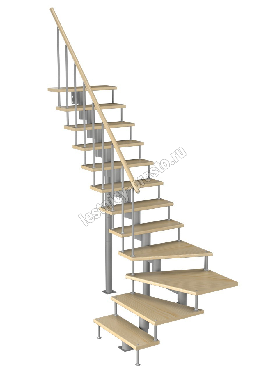 Модульная лестница Фаворит 180 2160-2280, Серый, Сосна, Крашеная