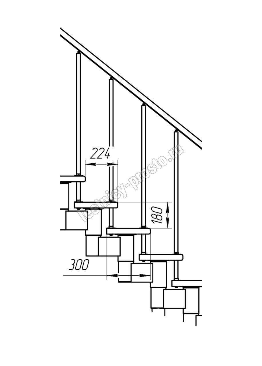 Модульная лестница Фаворит 180 2880-3040, Черный, Бук, Нержавеющая сталь