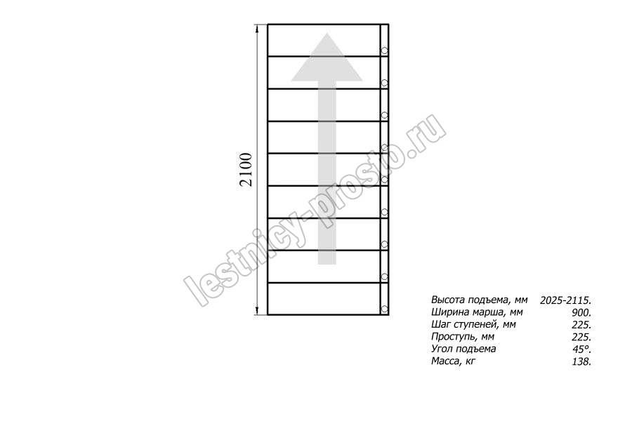 Модульная лестница Стандарт 2025-2115, Белый, Сосна, Крашеная, Без Ступений