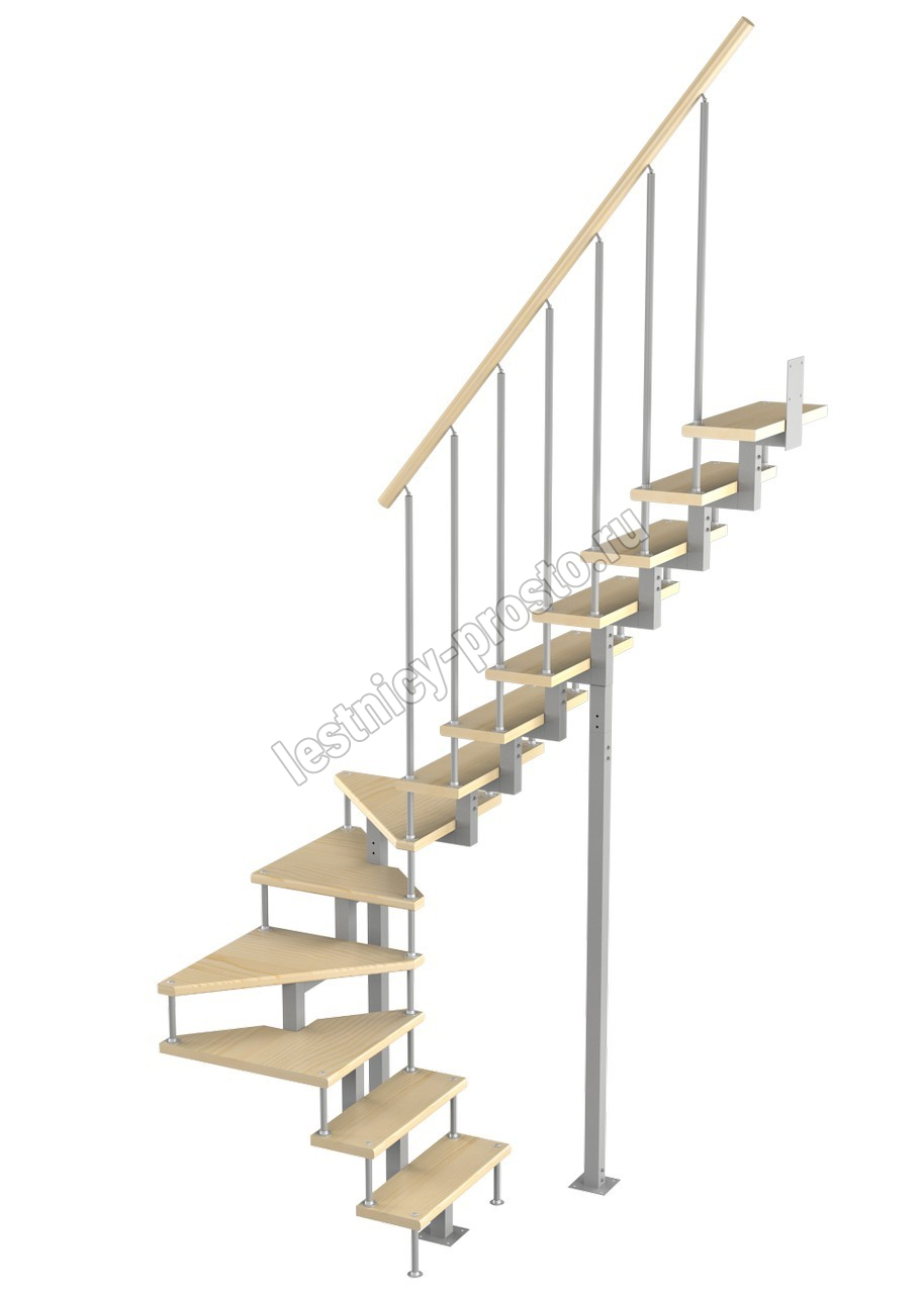 Модульная малогабаритная лестница Эксклюзив 2925-3150, Серый, Сосна, Нержавеющая сталь