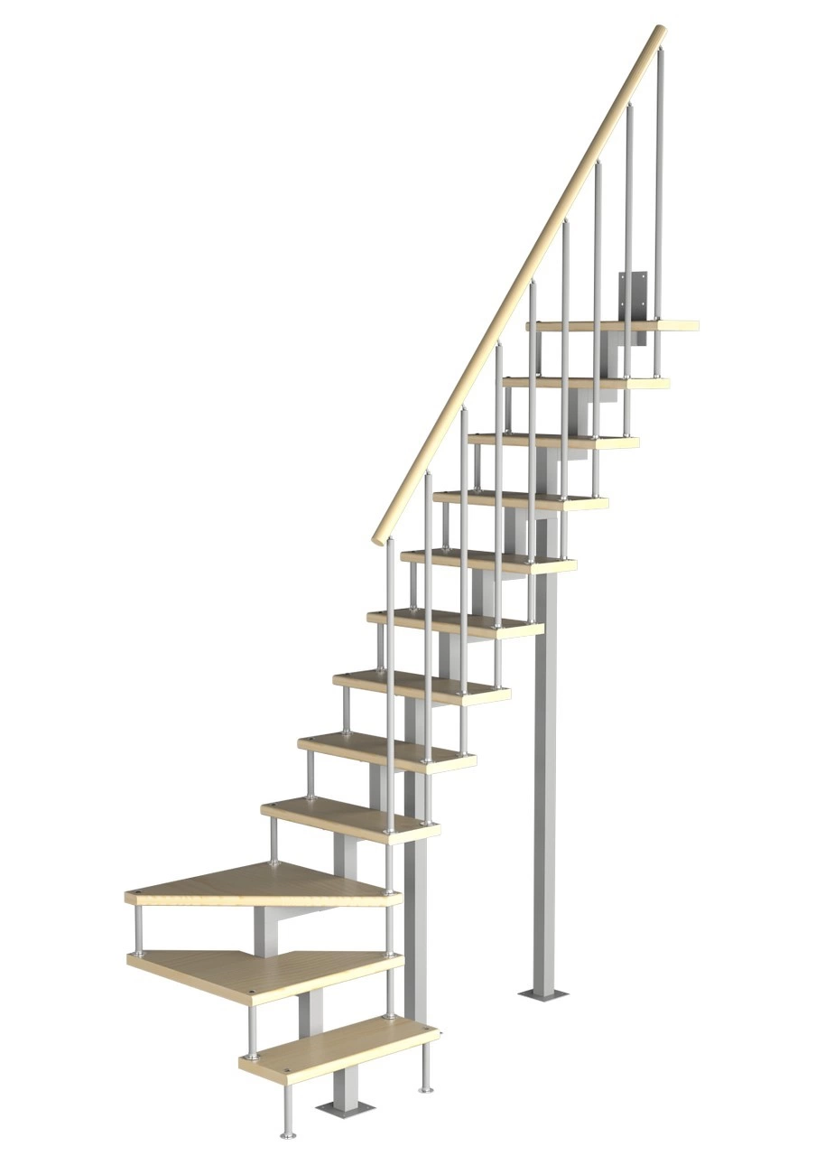 Модульная малогабаритная лестница Компакт 2700-2925, Серый, Сосна, Нержавеющая сталь