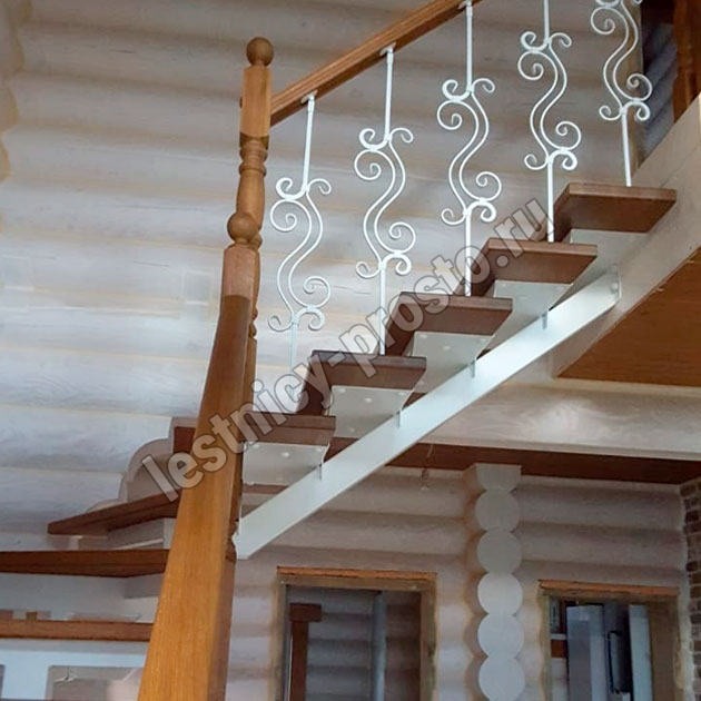 | Лестница PROSTO MONO Г-образная h315 см, ступени лиственница |
