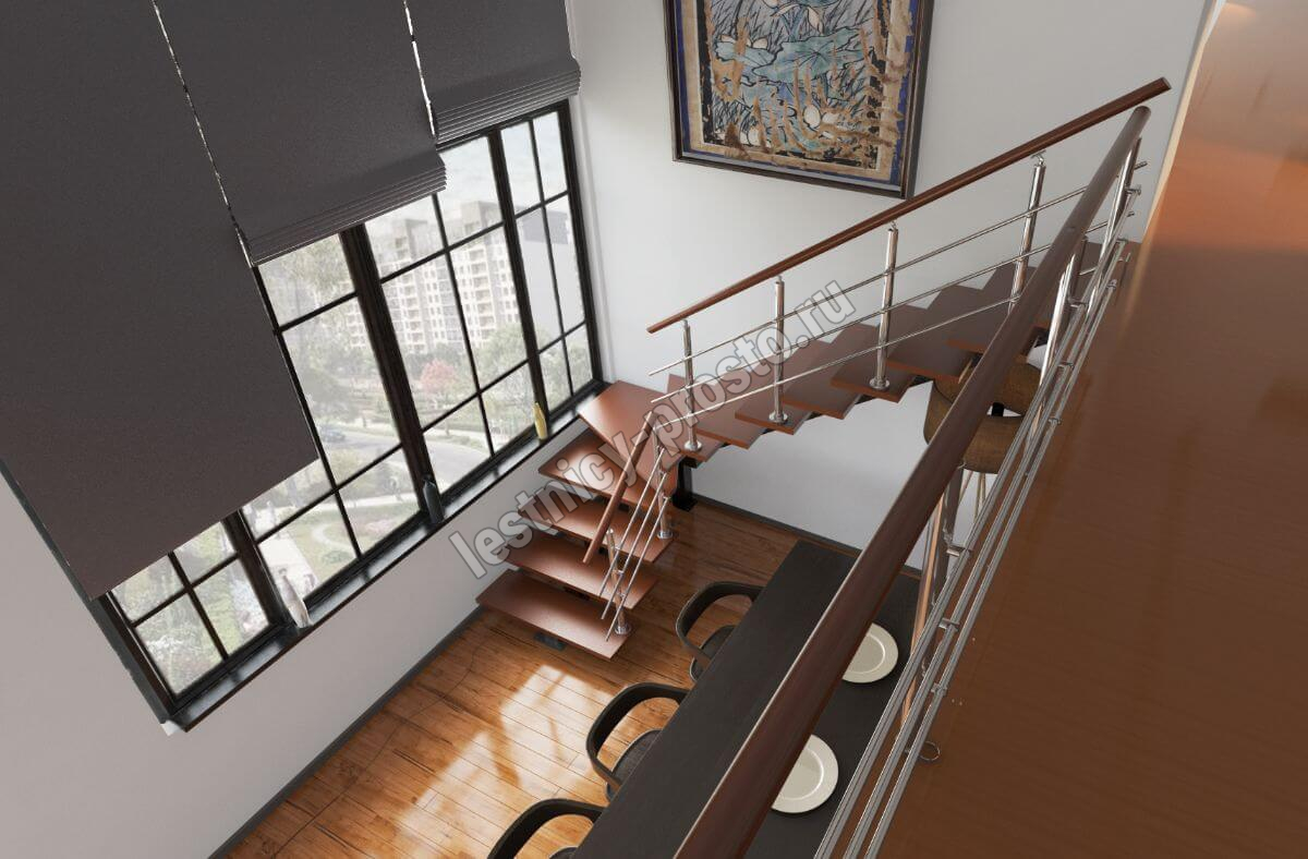 | Лестница PROSTO MONO Г-образная h270 см, ступени лиственница |