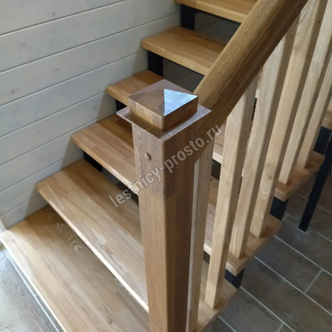 Ступени и ограждения выполнены из срощенного дуба категории АВ.