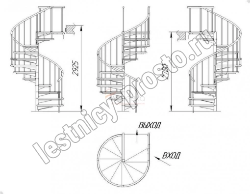 Винтовая лестница ЛЕС-1,8 высота 2700-2925, Серый, Сосна