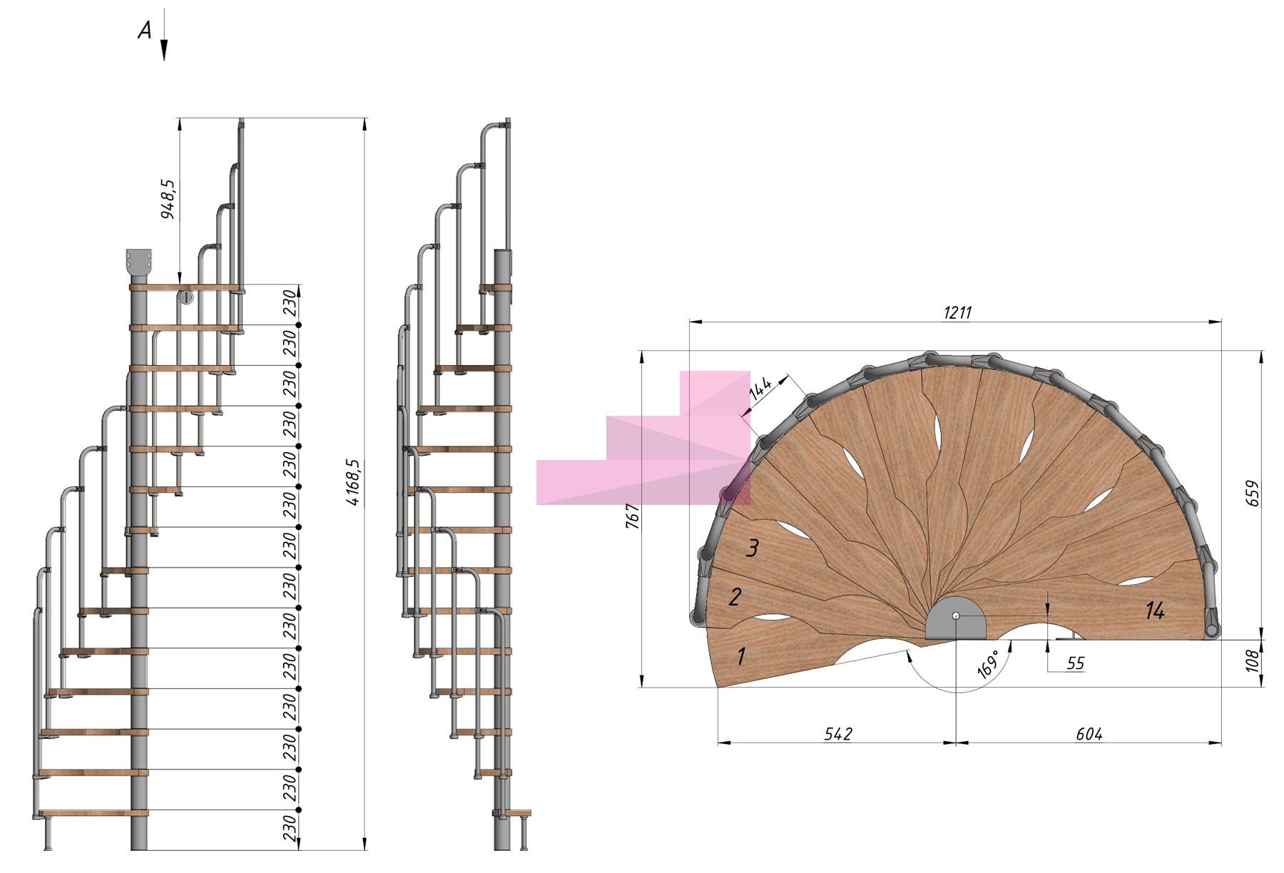 Высота лестницы 3220 - 3450 (14 ступеней) мм