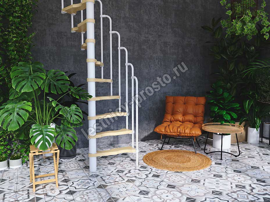 Винтовая лестница PROSTO MINI белая, 60×120 см, h322-345 см