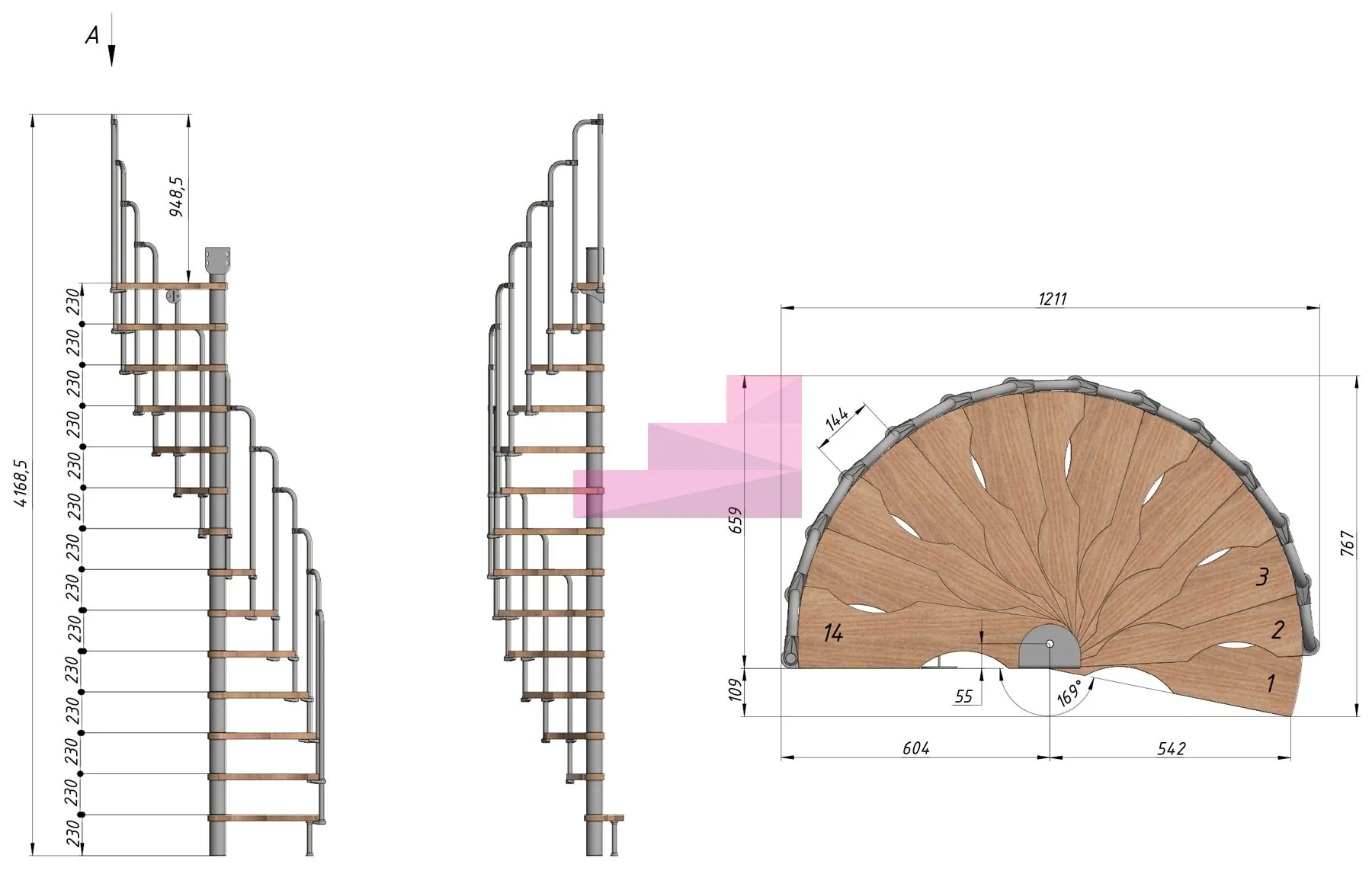 Ступени, элементы каркаса, ограждение, необходимая фурнитура и крепёж.