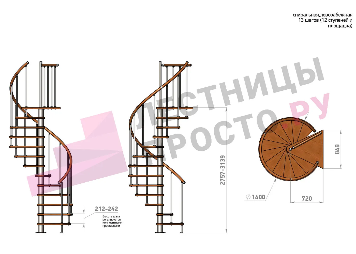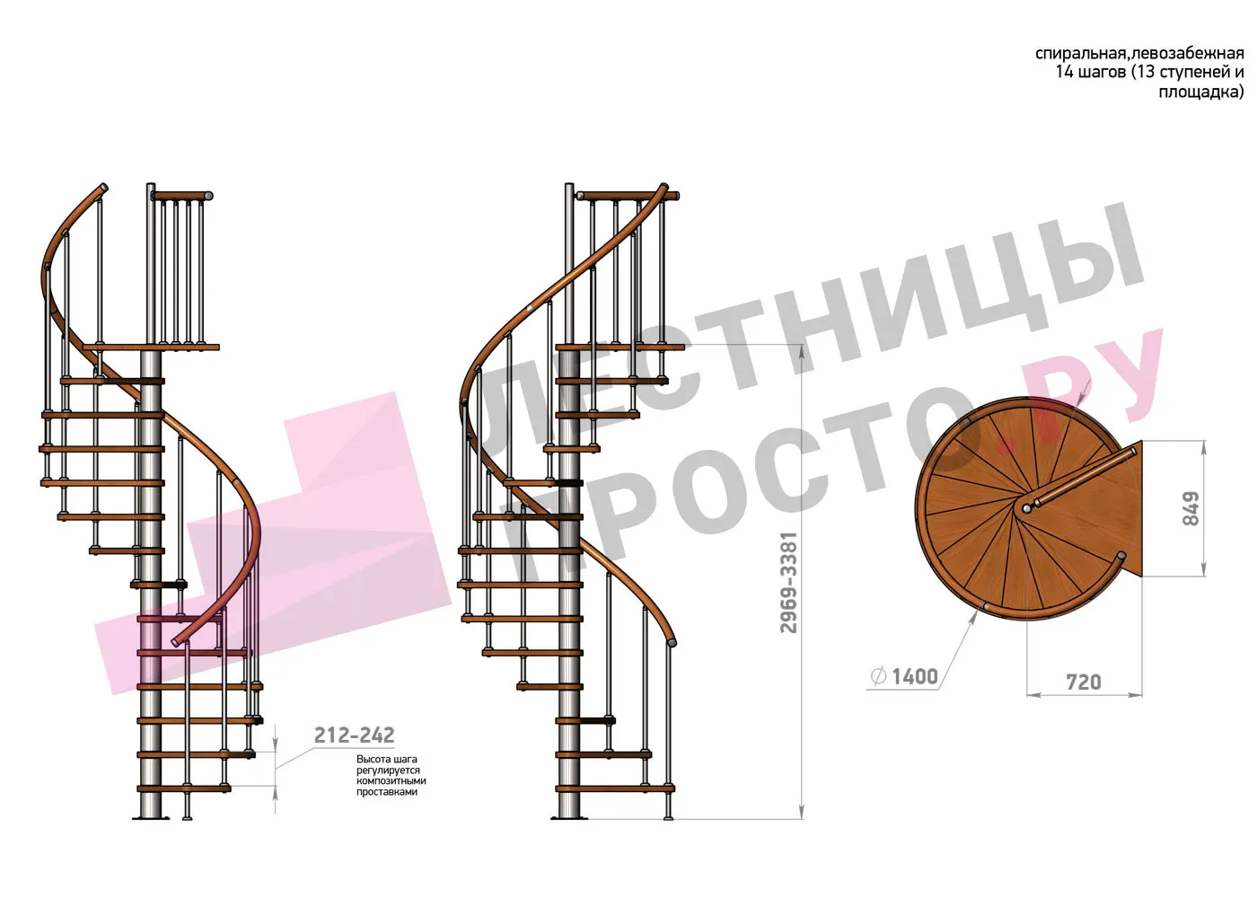 | Винтовая лестница Prosto Spiral Black D140см, h275.7-313.9 см |