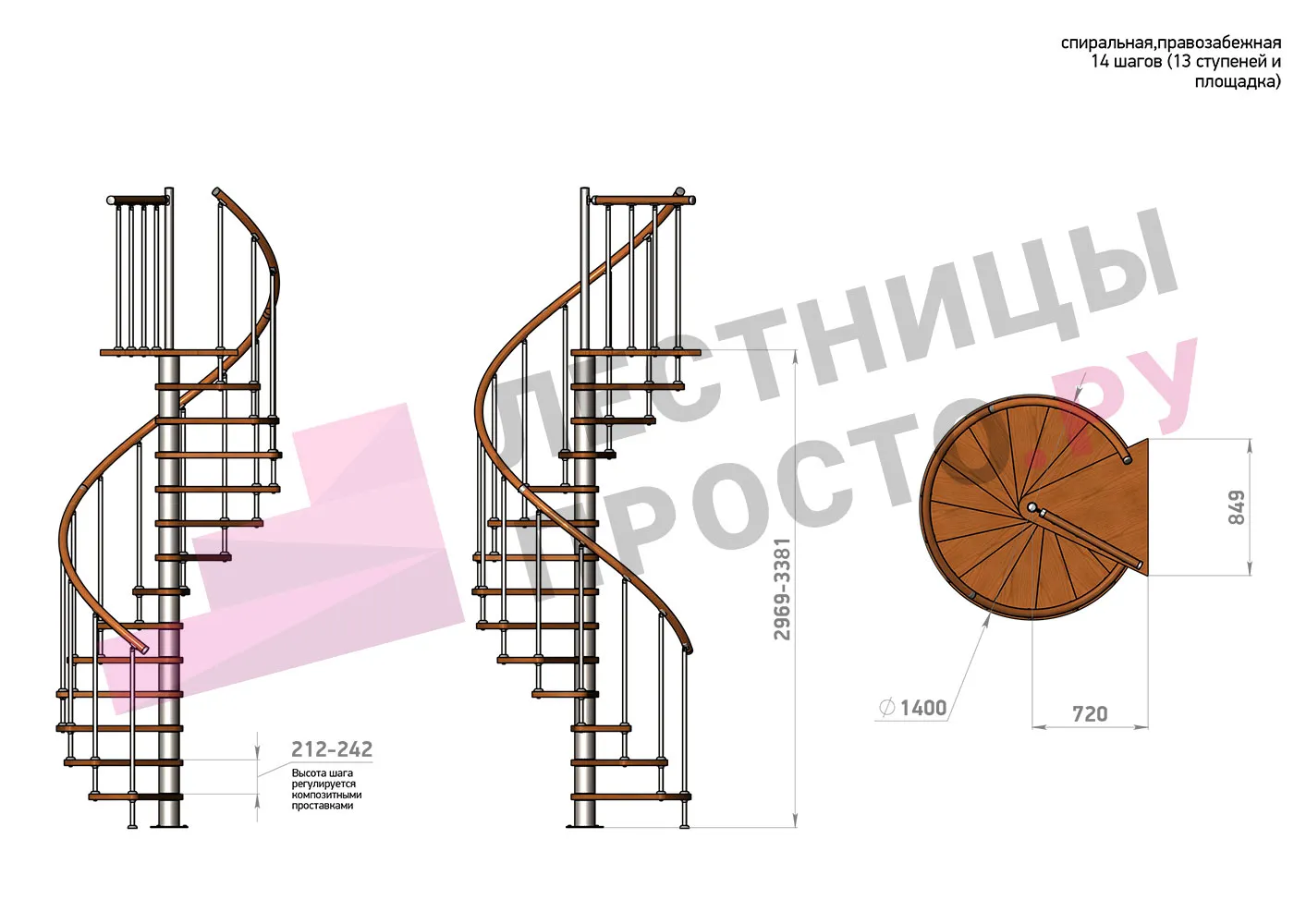| Винтовая лестница Prosto Spiral Black D140см, h318.2-362.3 см |