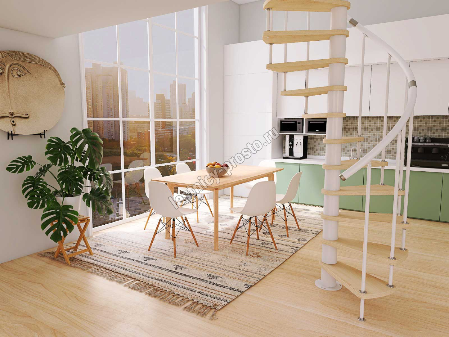 Винтовая лестница Prosto Spiral White из бука