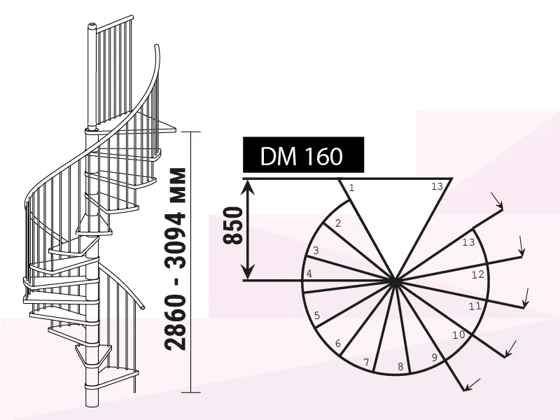 Благодаря возможности регулировать высоту шага с помощью пластиковых вставок (входят в базовый комплект), высоту лестницы можно варьировать в пределах от 2860 до 3090 мм. Кроме того, купив дополнительную секцию для этой лестницы, можно поднять высоту до 3320 мм.